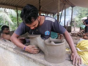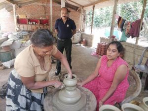 ජාතික ශිල්ප සභාවේ ඌව පළාත් නියෝජ්ය අධ්යක්ෂ කේ.එම්.ජී. කමල් මහතා ඇතුළු නිළධාරීන් පිරිසක් පසුගිය දා… මොණරාගල දිස්ත්රික්කයේ – පොල්ගහවෙල සාම්ප්රදායික මැටි කර්මාන්ත ගම්මානයේ නිරීක්ෂණ චාරිකාවක නිරත විය. එහි ශිල්පීන් ප්රධාන වශයෙන් සාම්ප්රදායික මැටි භාණ්ඩ නිෂ්පාදනයට සීමාවී සිටිති. අවම අමුද්රව්ය භාවිතා කරමින් වැඩි වටිනාකමකින් යුත් විසිතුරු භාණ්ඩ වැනි දෑ නිර්මාණය කිරීමට ඔවුන්ට තාක්ෂණික දැනුම නොමැති වීම හේතුවෙන් තරඟකාරී වෙළඳපොළට ඇතුළු වීමට අපහසු වී ඇති බව නිරීක්ෂණය විය.
